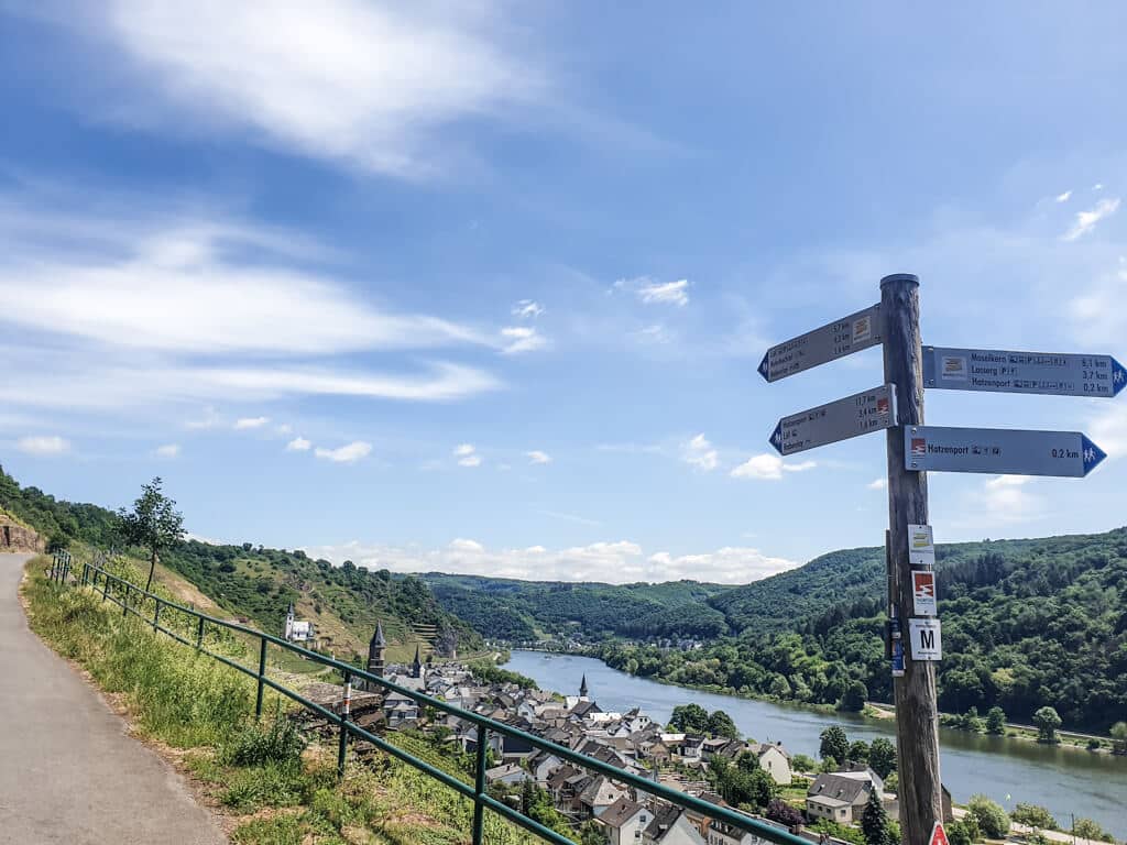 Ansonsten folgt der Weg wieder verschiedenen Wegen durch Wälder und Weinberge mit tollen Ausblicken auf die Mosel und die kleinen Ortschaften am Wegesrand.