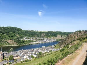 Wer den steilen Abstieg scheut, kann auch über die weiten Serpentinen hinunter in den Ort laufen und gelangt dort ebenfalls wieder zurück auf den Moselsteig.